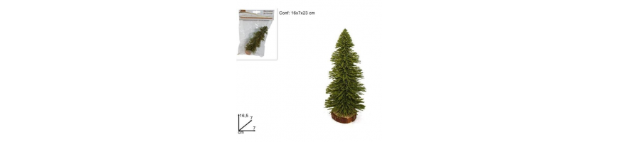 3 Alberelli sintetici h 16 cm per presepe con base in legno