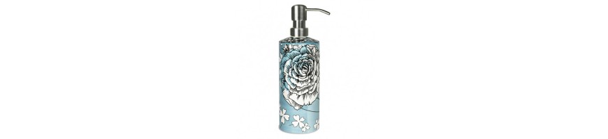 Dispenser per sapone liquido decorato, realizzato in porcellana da MAMIÂ Milano, made in Italy