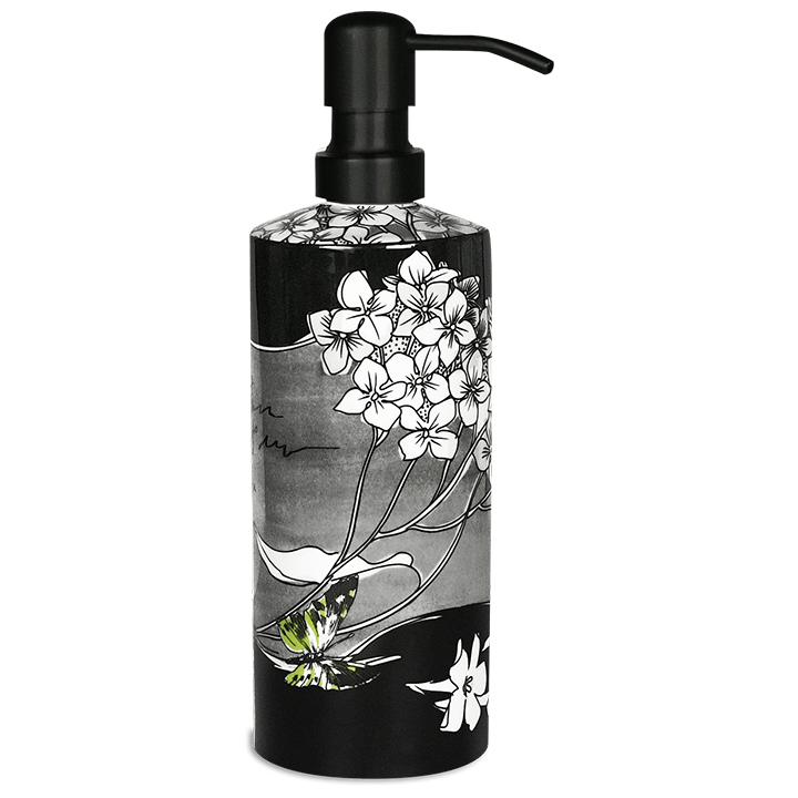 Accessorio Arredo Bagno: Erogatore per sapone liquido decorato realizzato da MAMI Milano linea Naso & Matita* tema "Il Fascino"