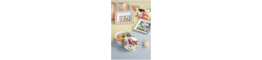 I colori pastello e una raffinata combinazione di motivi decorativi classici e contemporanei rendono questa collezione straordinaria e sorprendente. Sei diversi posti tavola, sei diverse tonalità pastello, 6 geometrie e soggetti che in un armonico gioco di richiami e assonanze creano una tavola allegra e splendente, capace di stupire e rallegrare. Tovaglie e complementi d'arredo completano questa collezione ricercata, ricreando atmosfere oniriche, pop.