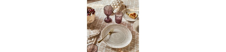 Tovaglia da Tavola in Tessuto Linea Shanti in Cotone colore avorio con stampa geometrica colore beige-rosa