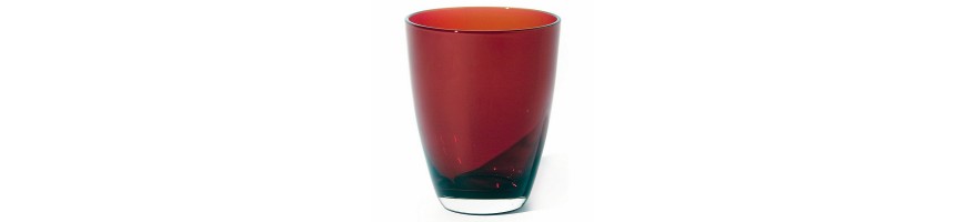 6 Bicchieri acqua in vetro colorato, colore rosso, linea Thea