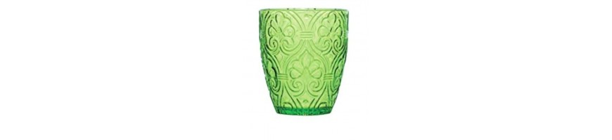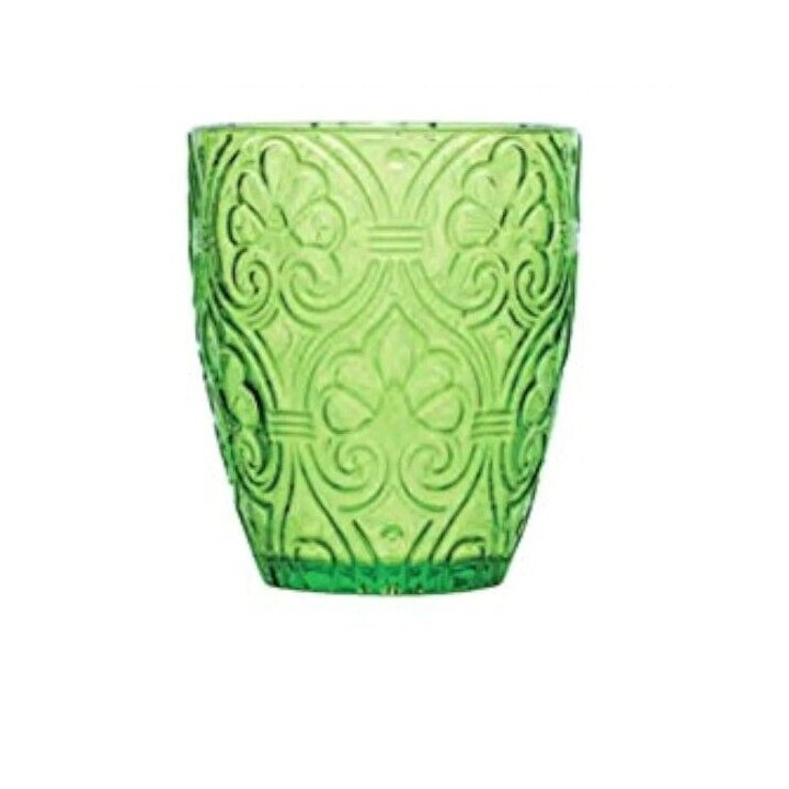 6 Bicchieri acqua in vetro decorato, colore verde, linea Corinto