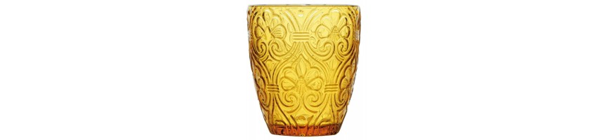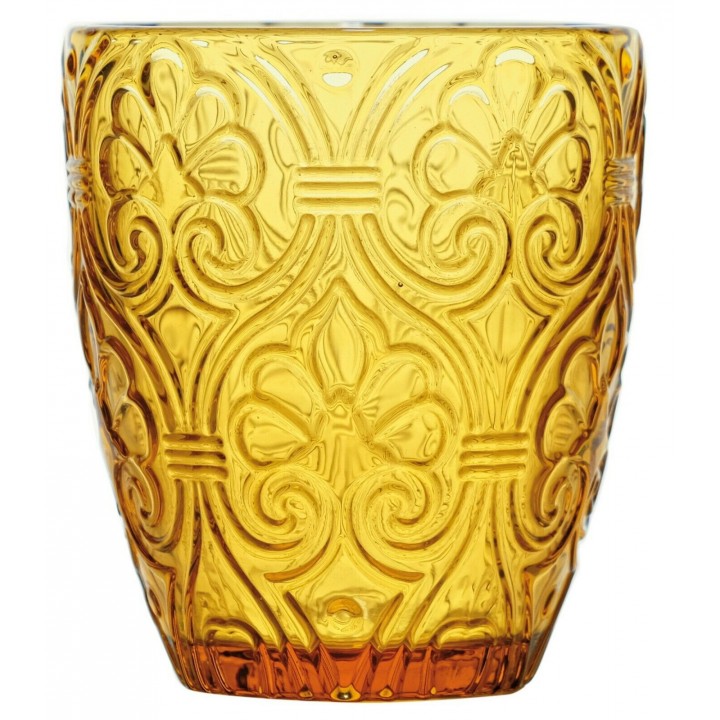 6 Bicchieri acqua in vetro decorato, colore ambra, linea Corinto