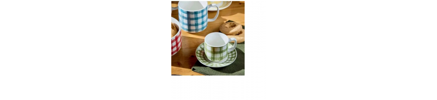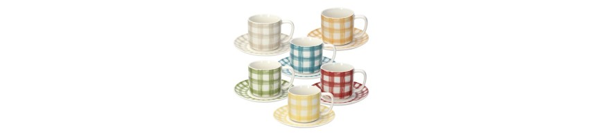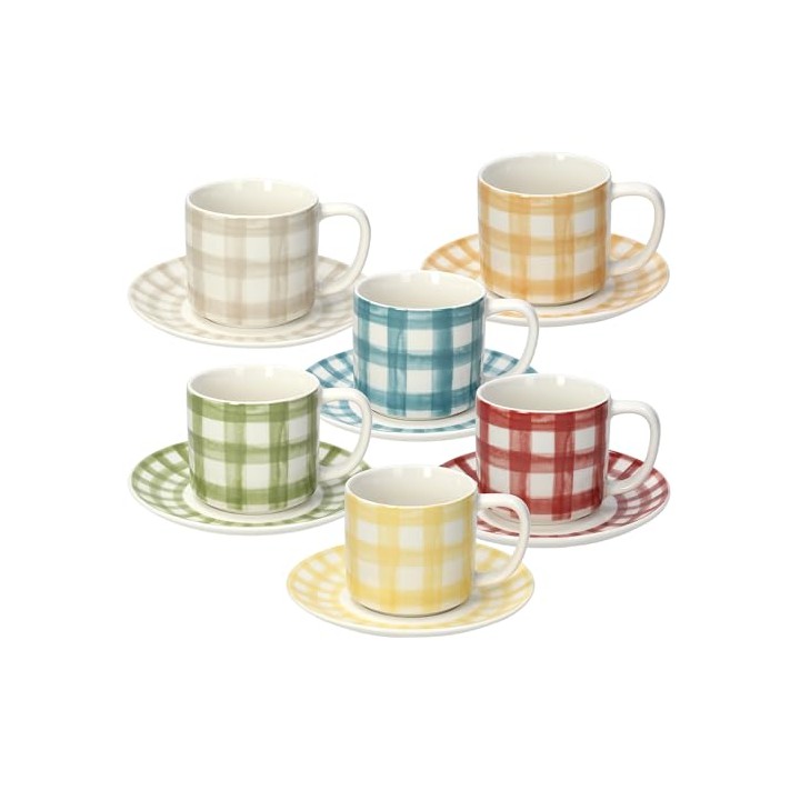 6 tazzine da caffè con piattini Colorato in 6 nuance differenti con decoro quadretti