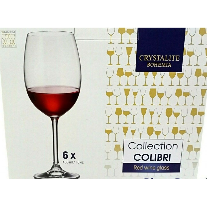 6 Calici vino rosso 450ml, trasparenti, vetro Cristalleria Bohemia