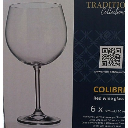 6 Calici vino rosso ballon 570ml, trasparenti, vetro Cristalleria Bohemia
