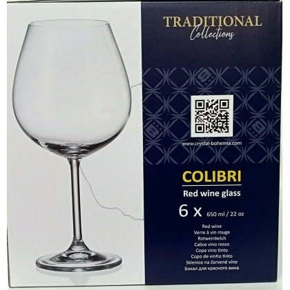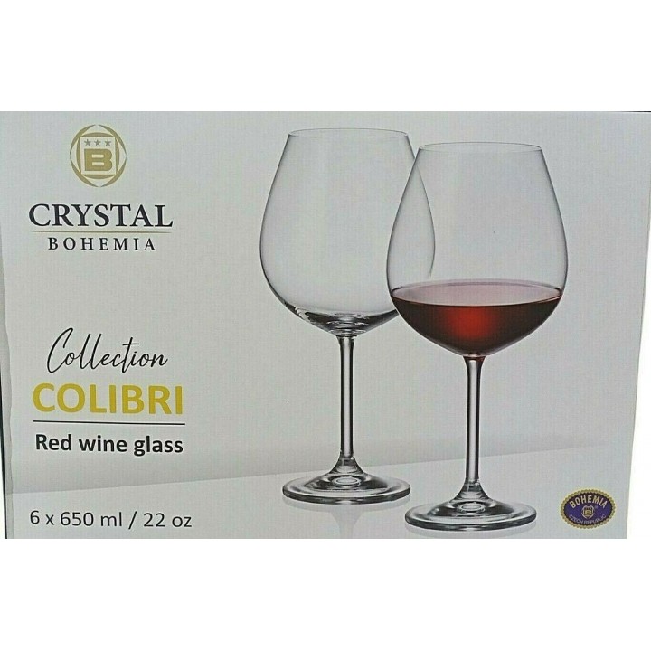 6 Calici vino rosso 650ml, trasparenti, vetro Cristalleria Bohemia