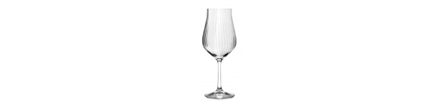 Una Linea di Bicchieri dalla forma tulipano effetto Ottico con gambo sottile ma robusto