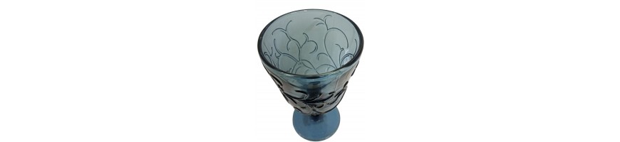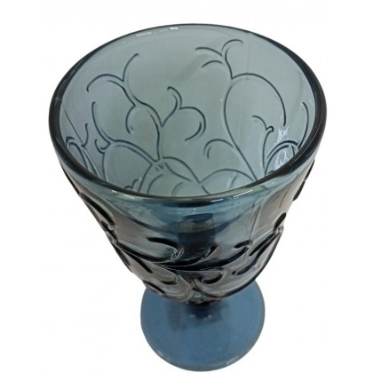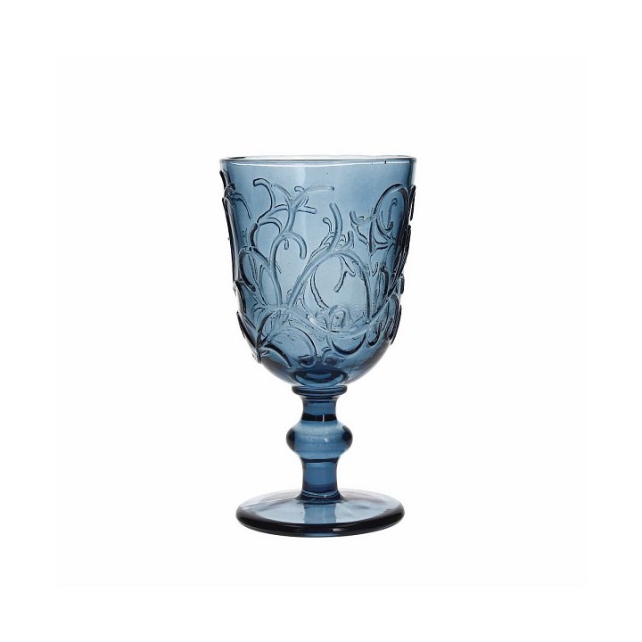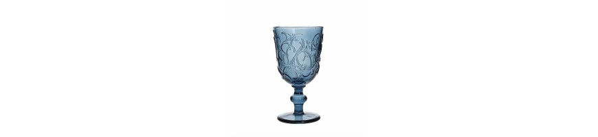 set 6 Bicchieri calici in vetro decorato, colore blu, linea Marriage