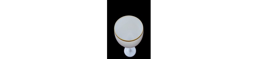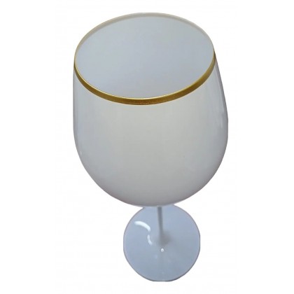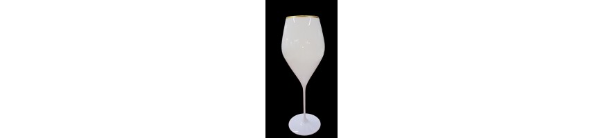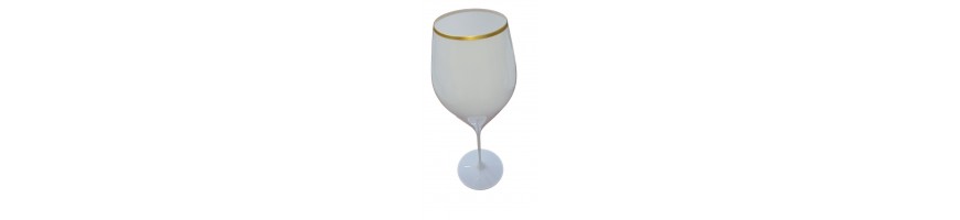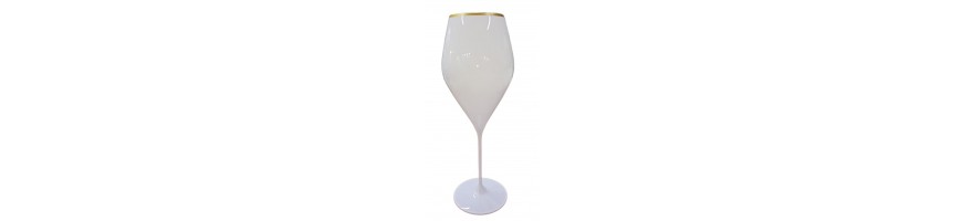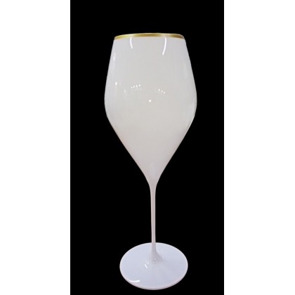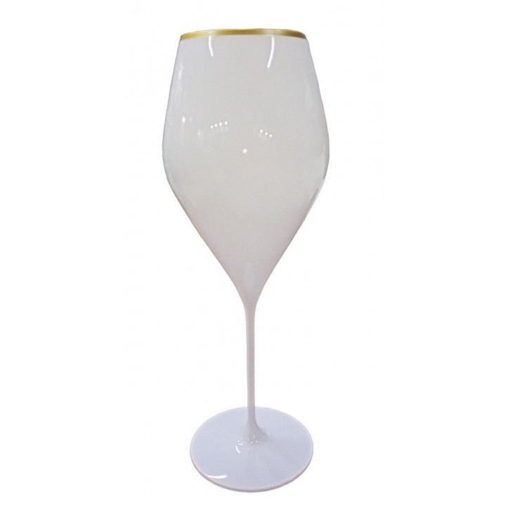 Eleganti e raffinati Bicchieri rifiniti a mano colore Bianco impreziositi con un sottile filo oro in vetro cristallino perfetto per la vostra tavola di classe.
