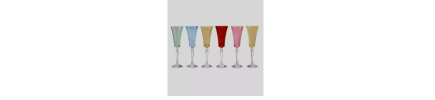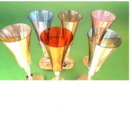 6 Calici flute, colorati e dal gambo sottile, realizzati in vetro cristallino