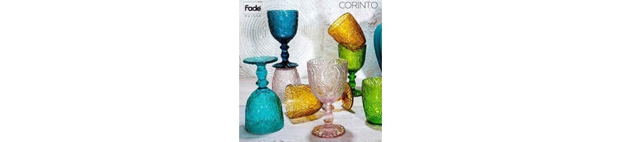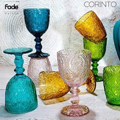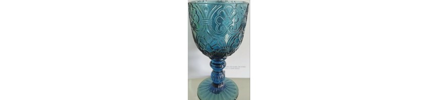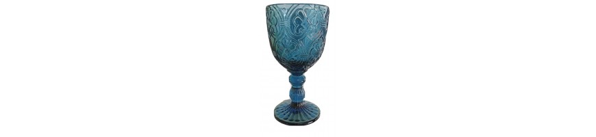 6 Bicchieri calici in vetro decorato, colore blu, linea Corinto