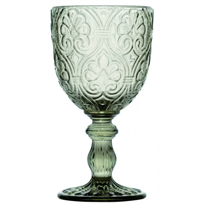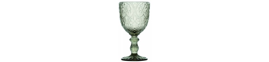 6 Bicchieri calici in vetro decorato, colore grigio, linea Corinto