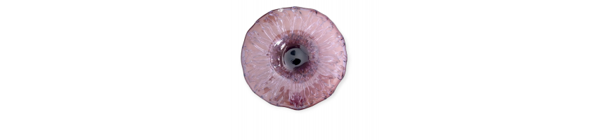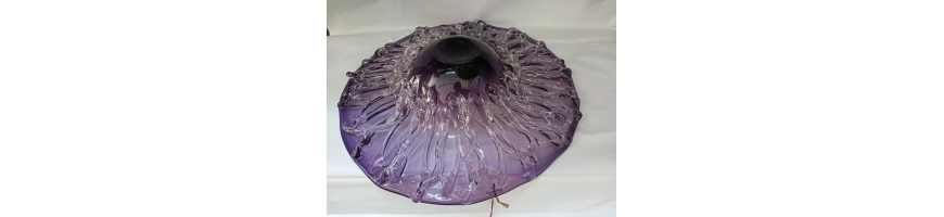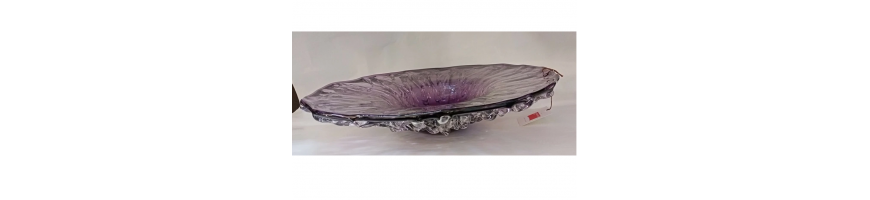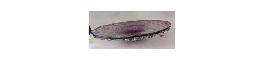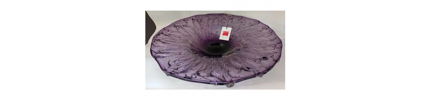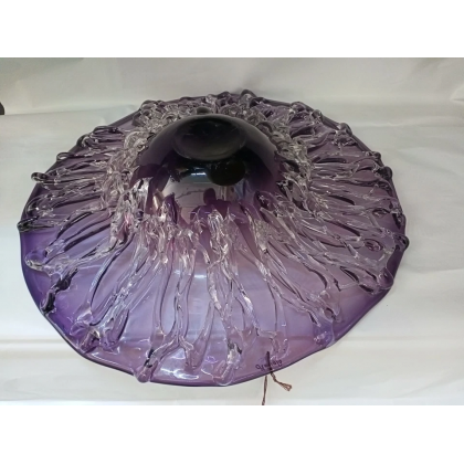 Bellissimo Centrotavola di grande effetto, rotondo in vetro colore Viola-Ametista,