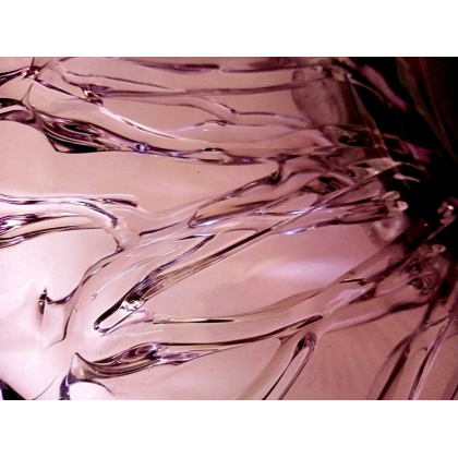 realizzato artigianalmente con sovra-posizione di vetro trasparente sul fondo dell' Centrotavola in pasta di vetro colorato che formano una ragnatela. Interno liscio, esterno lavorato.