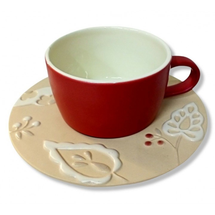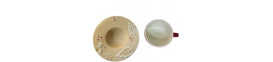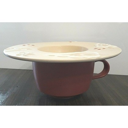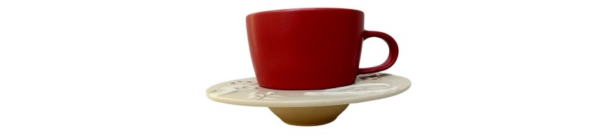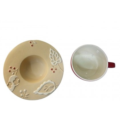 Tazza Cioccolato, Colazione con piattino con profondo incavo utilizzabile come: porta-creme/dolci o coperchio della tazza.