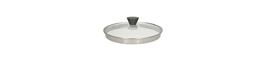Coperchio in vetro trasparente con bordo acciaio con comodo scolatore. Adattabile a padelle Ø 28cmÂ