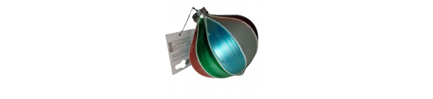 Bellissime Palline in Vetro Multicolore dalla forma a Goccia con rifinitura con Glitter dello stesso colore, capsula per appendere in metallo colore argento con filino pronta per decorare la vostra casa.