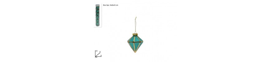 6 Palline di Natale forma rombi verde-tiffany h 9 cm