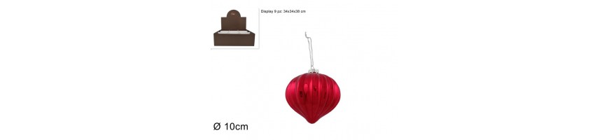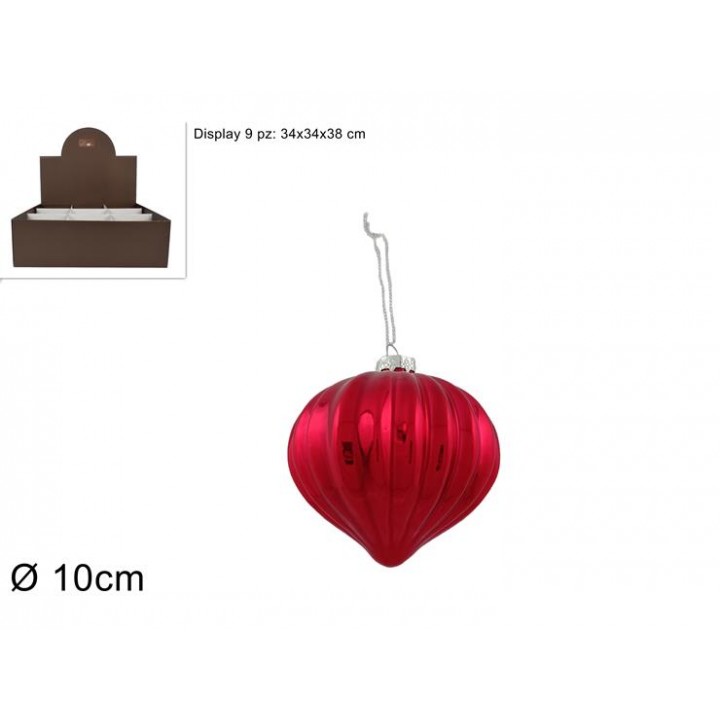 Pallina di natale Forma Goccia diametro 10 cm rigata colore rosso lucido