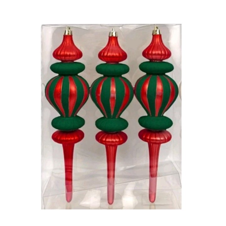 Decorazione Natalizia Set 3 Fusi colore verde-rosso h 25 cm