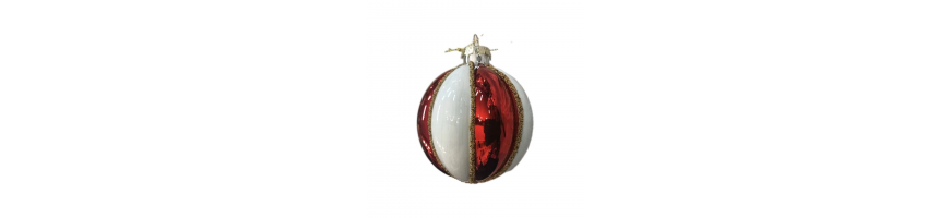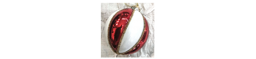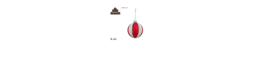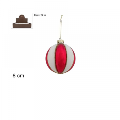 Pallina di natale Tonda colore Rosso e Bianco diametro 8 cm