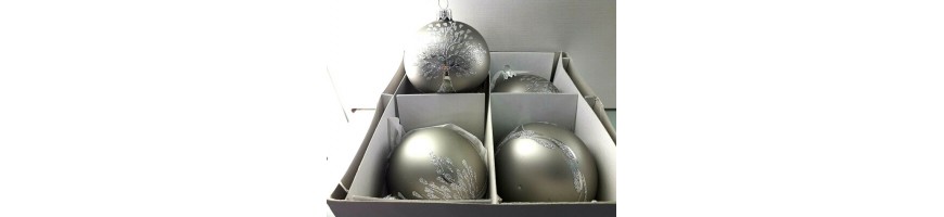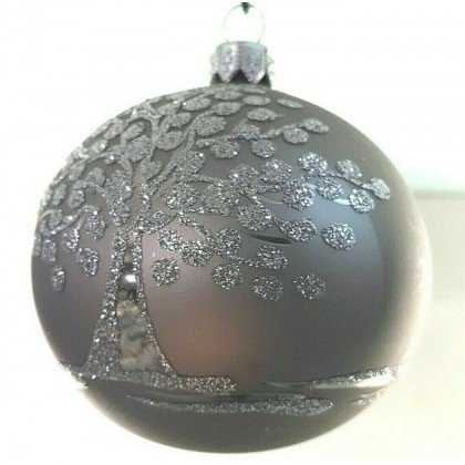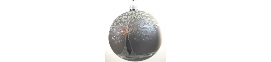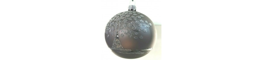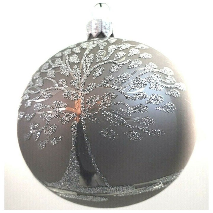 Confezione 4 sfere grigie con decoro albero della vita argento