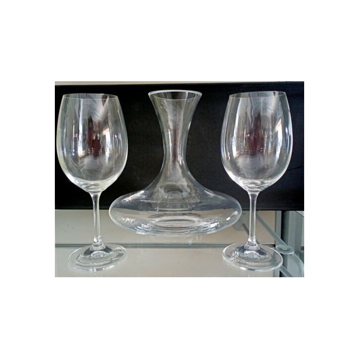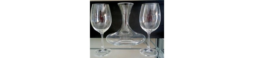 dimensioni: Calici= h21cm Ø 6,5cm - Capacità : 350 ml; Decanter h22cm Ø22cm - Capacità 1,35cl