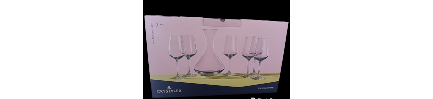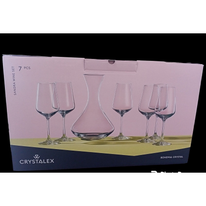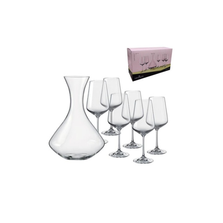 Set 7 pezzi, confezione 6 Calici con Decanter, prodotto Crystalex Bohemia per Brand Fade Maison