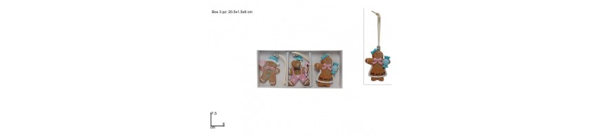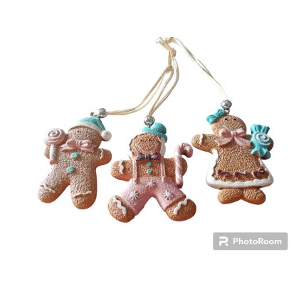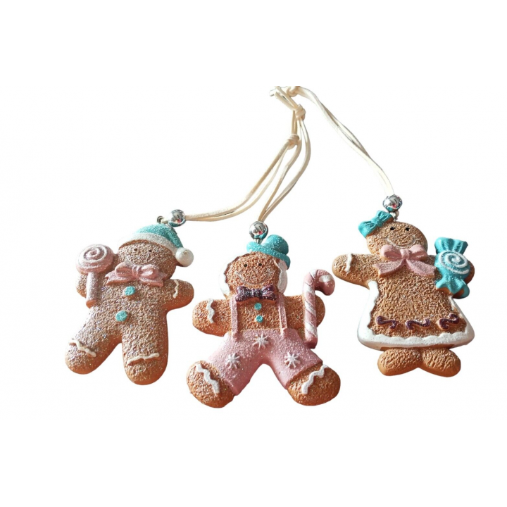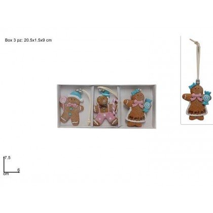 3 Appendini in Resina Biscotto Pan di Zenzero h 7,5 cm