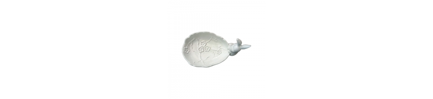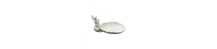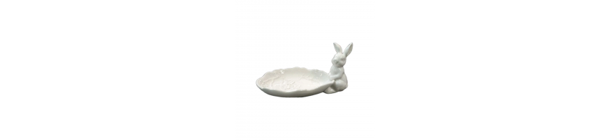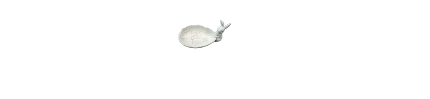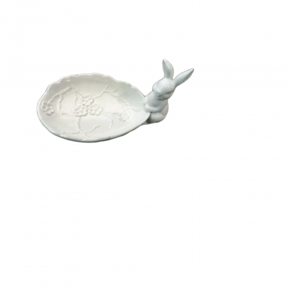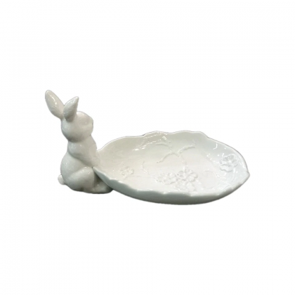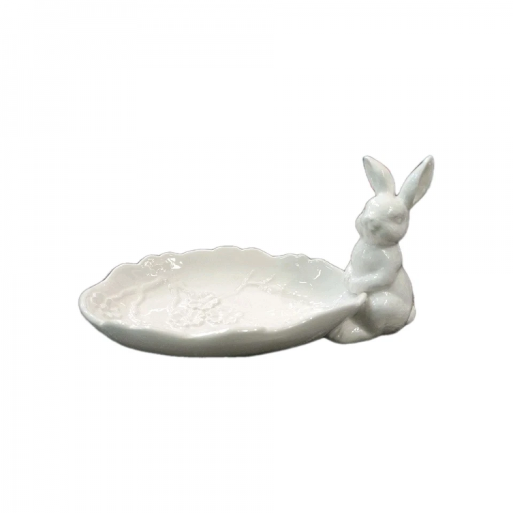 Vassoio Piattino Coniglietto Bunny Ceramica Bianca 19 x11,5x 9, 5cm Fade Maison