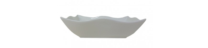 Insalatiera rettangolare, vassoio fondo, ondulato, in fine porcellana bianca