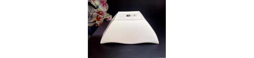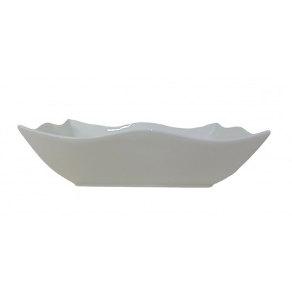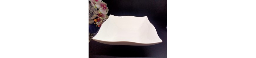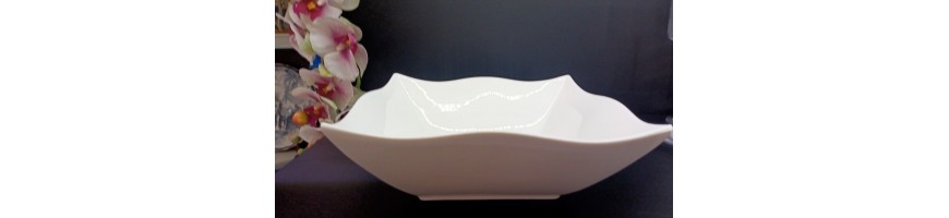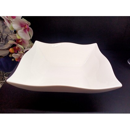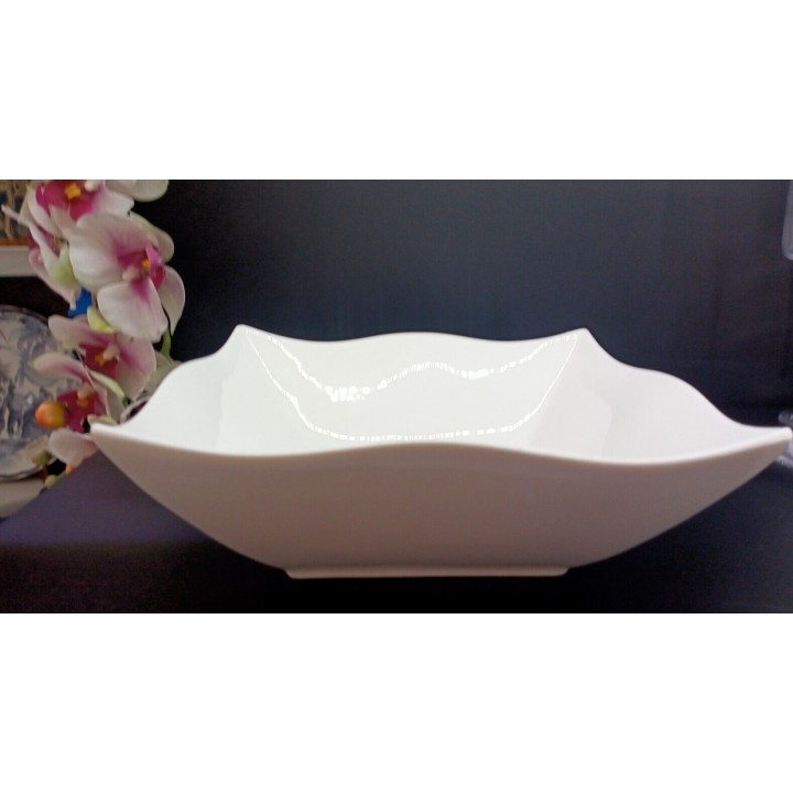 Insalatiera quadrata Helton ondulato, in fine porcellana bianca