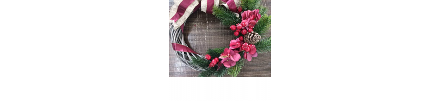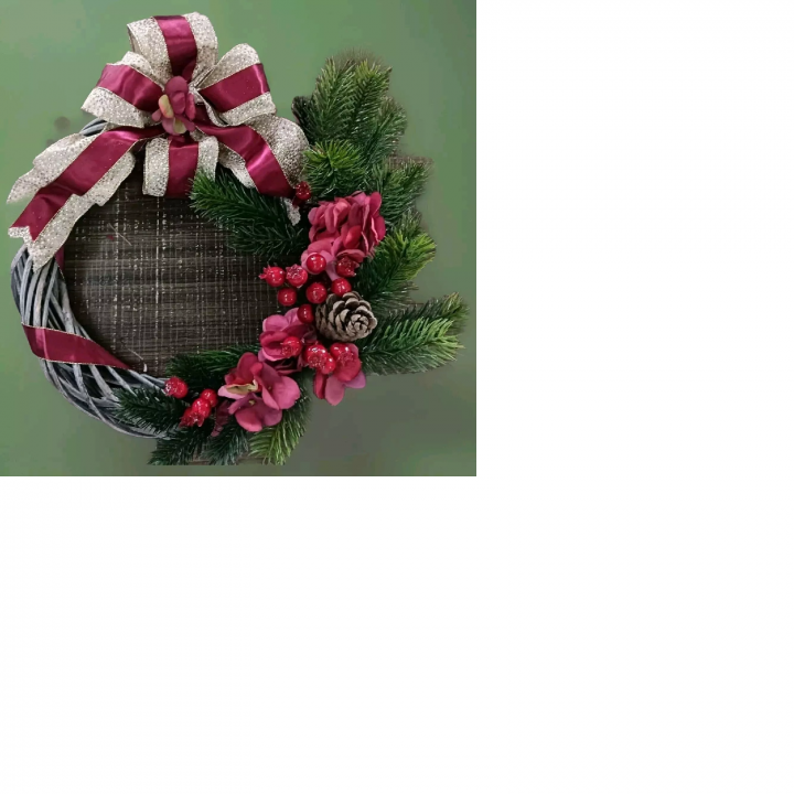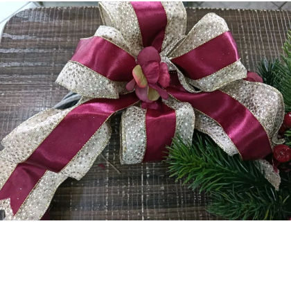 Fuoriporta con bacche rosse e fiori e nastro bordò ed oro