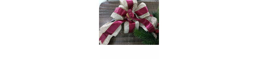 arricchita con nastri di tessuto fantasia oro e bordò.