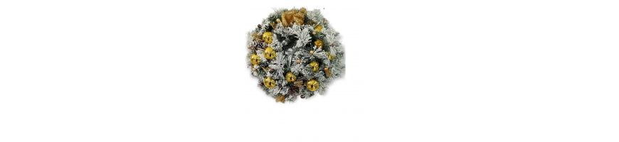 Ghirlanda rotonda molto folta colore verde di pino sintetico Innevata