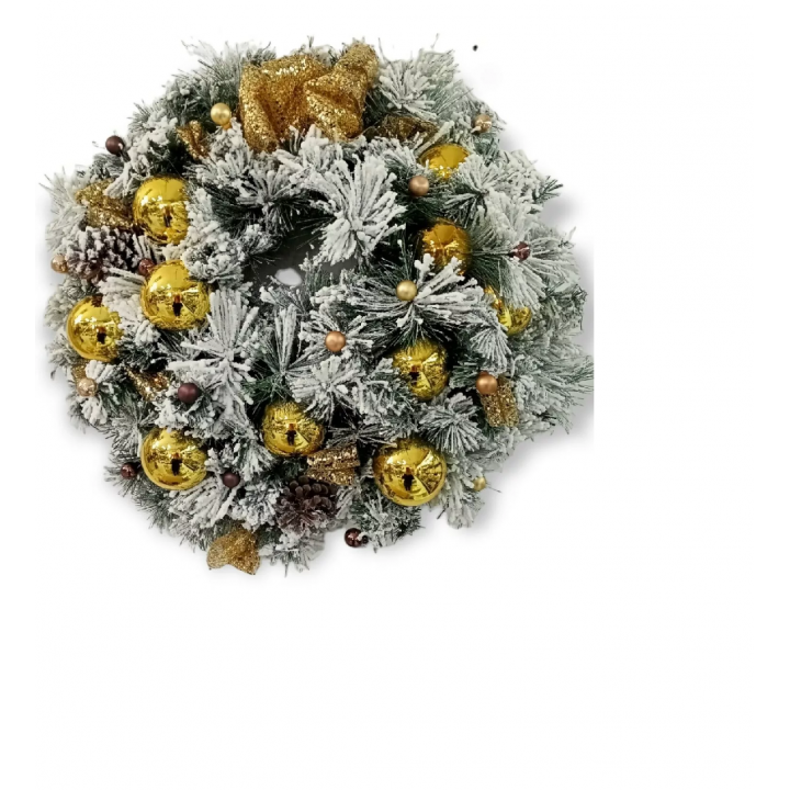 Ghirlanda natalizia tonda innevata decorata diametro 60 cm