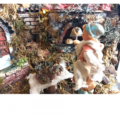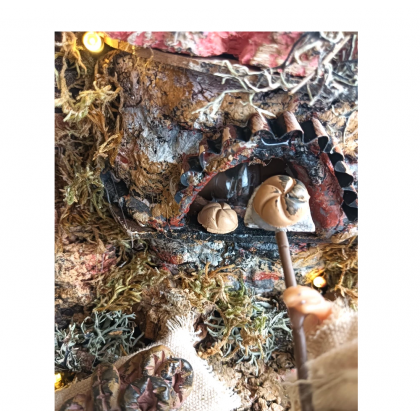 lo sfondo dipinto tutto illuminato con 35 luci led colore bianco caldo.