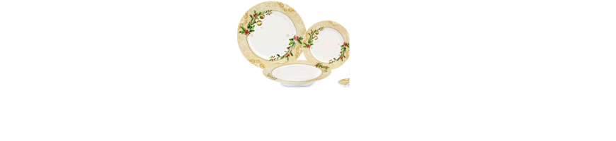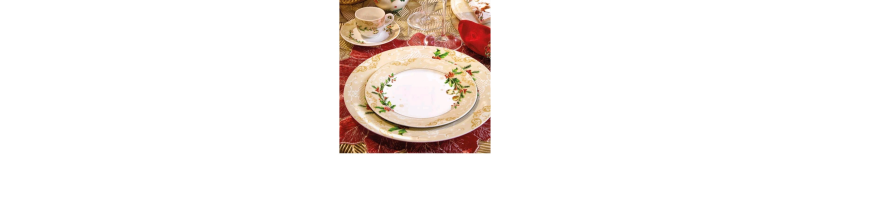 Servizio piatti per 6 posto tavola in porcellana decoro natalizio Agrifoglio