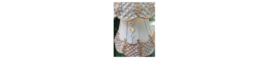 realizzato in Poliresina, colore panna con rifiniture a mano colore oro finitura matte