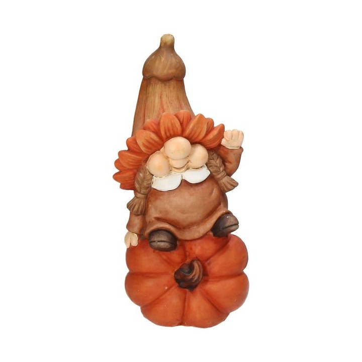 Statuina in poliresina raffigurante un elfo con treccine poggiato su una zucca