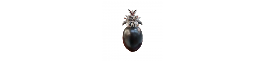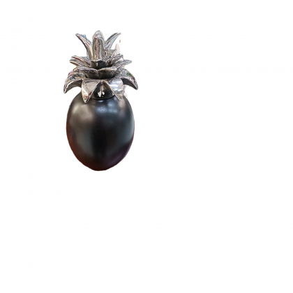 Oggetto d'Arredamento in Porcellana Ananas colore nero finitura matte con corona colore argento lucida.