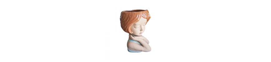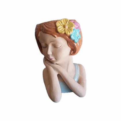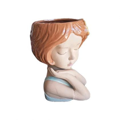 Vaso Busto Ragazza realizzato in terracotta con parte superiore ed interno smaltata adatto per fiori e e piante