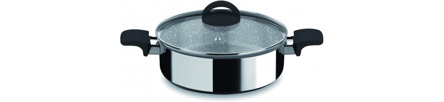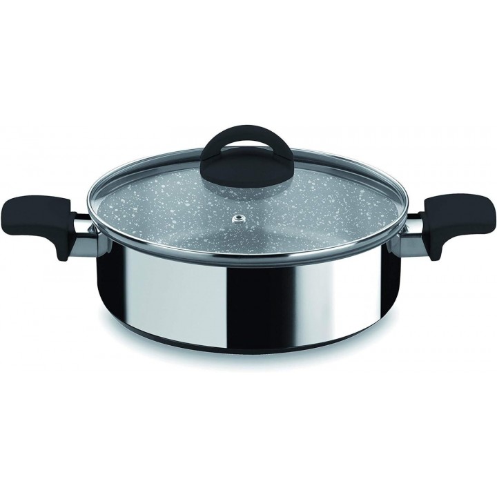 Tegame in Acciaio esterno e antiaderente interno con 2 manici completo di Coperchio in Vetro temperato