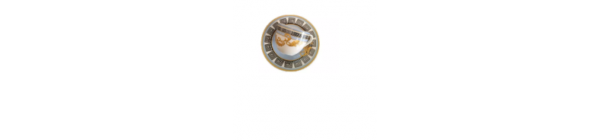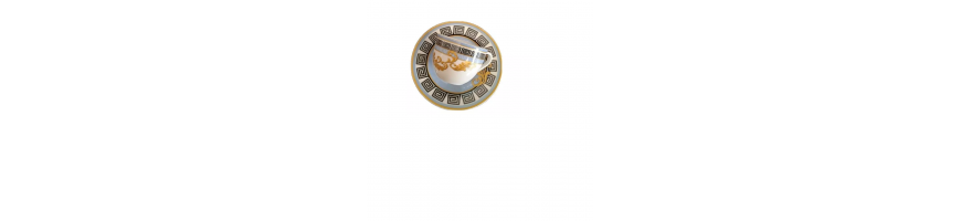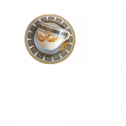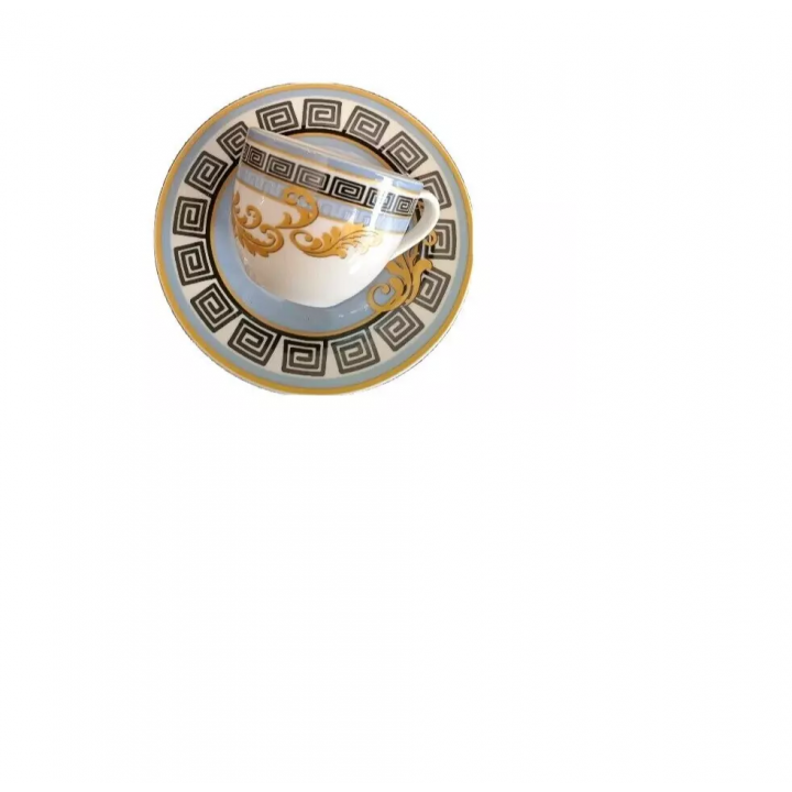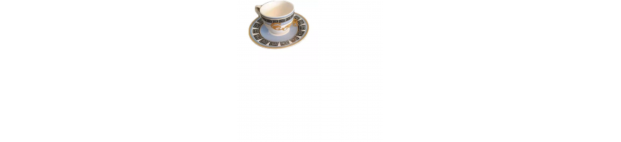 con un ricco decoro oro ed azzurro sulle tazzine e sulle piattine.
