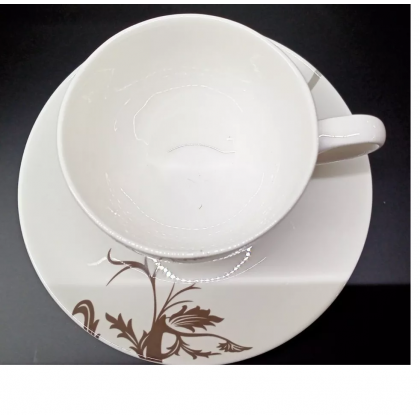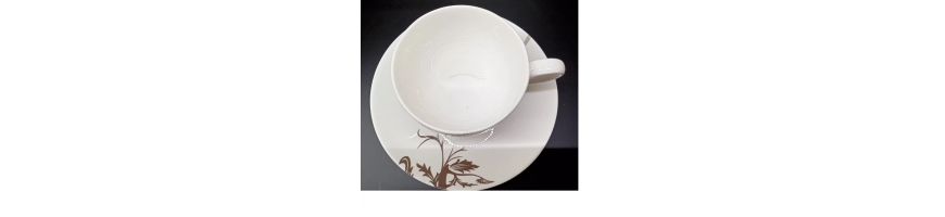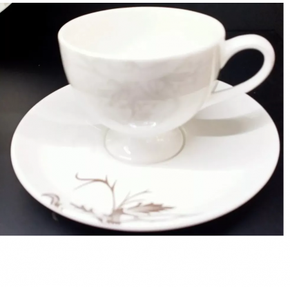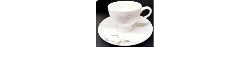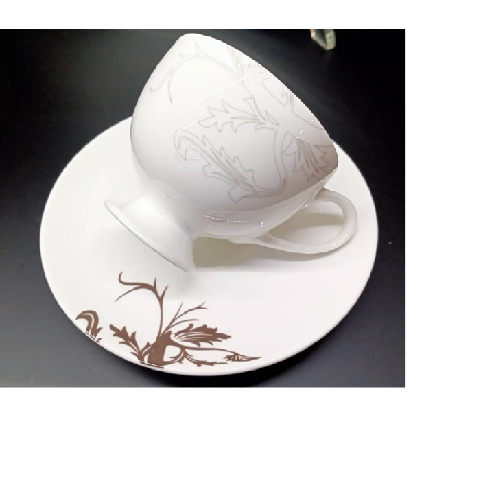con decoro delicato colore grigio sulle tazzine e colore moka sulle piattine.