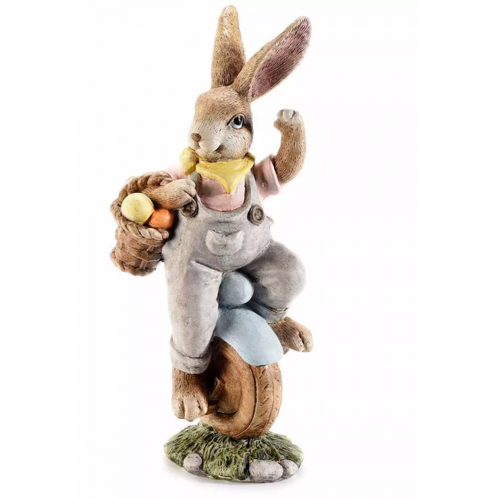 Coniglietto su Monociclo in Resina Decorazione Pasquale Statuina Coniglietto in Resina colorata, rifinito a mano