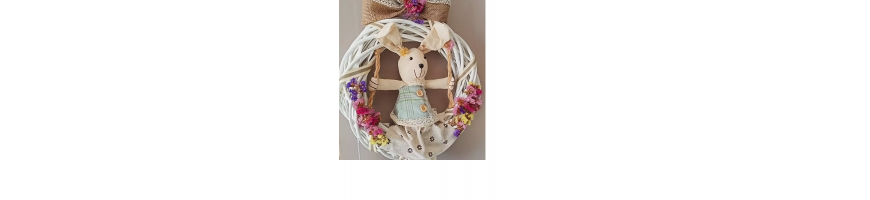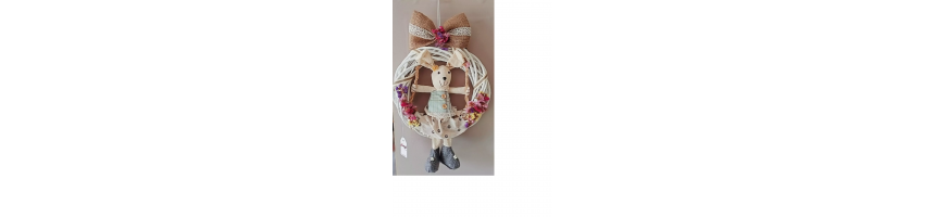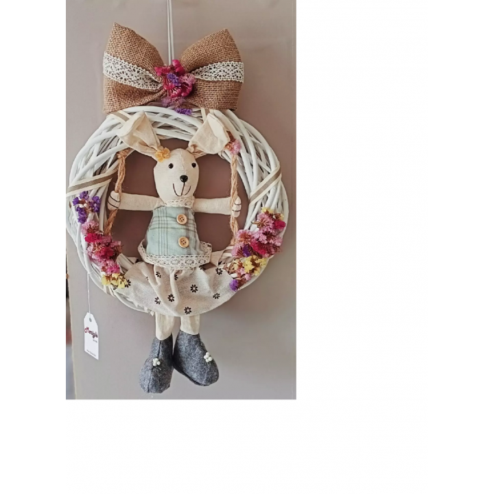 Ghirlanda Dietro Porta Pasquale Corona Legno con coniglietto in tessuto D. 30 cm