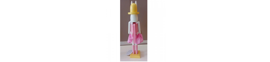 Coniglietto Schiaccianoci h38 cm in legno cappellino giallo